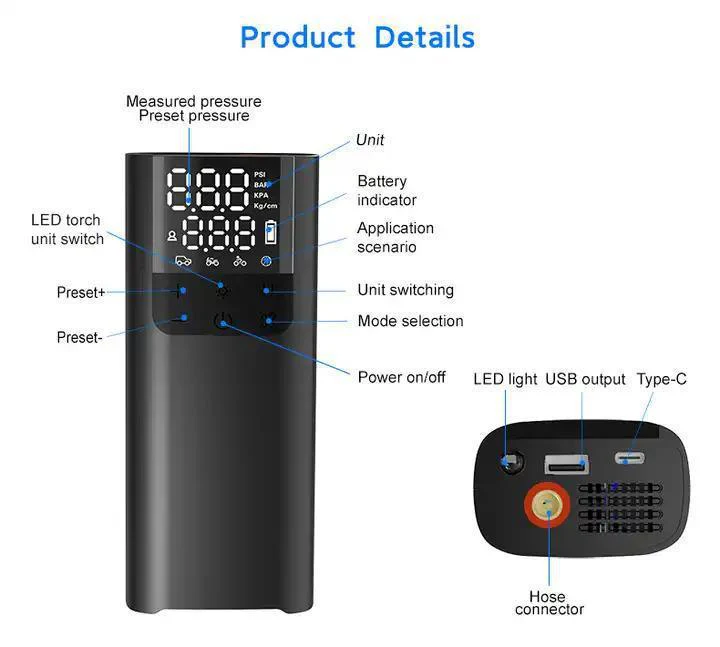 Portability: Lightweight and easy to carry, suitable for cars, bicycles, motorcycles, and other inflatables.