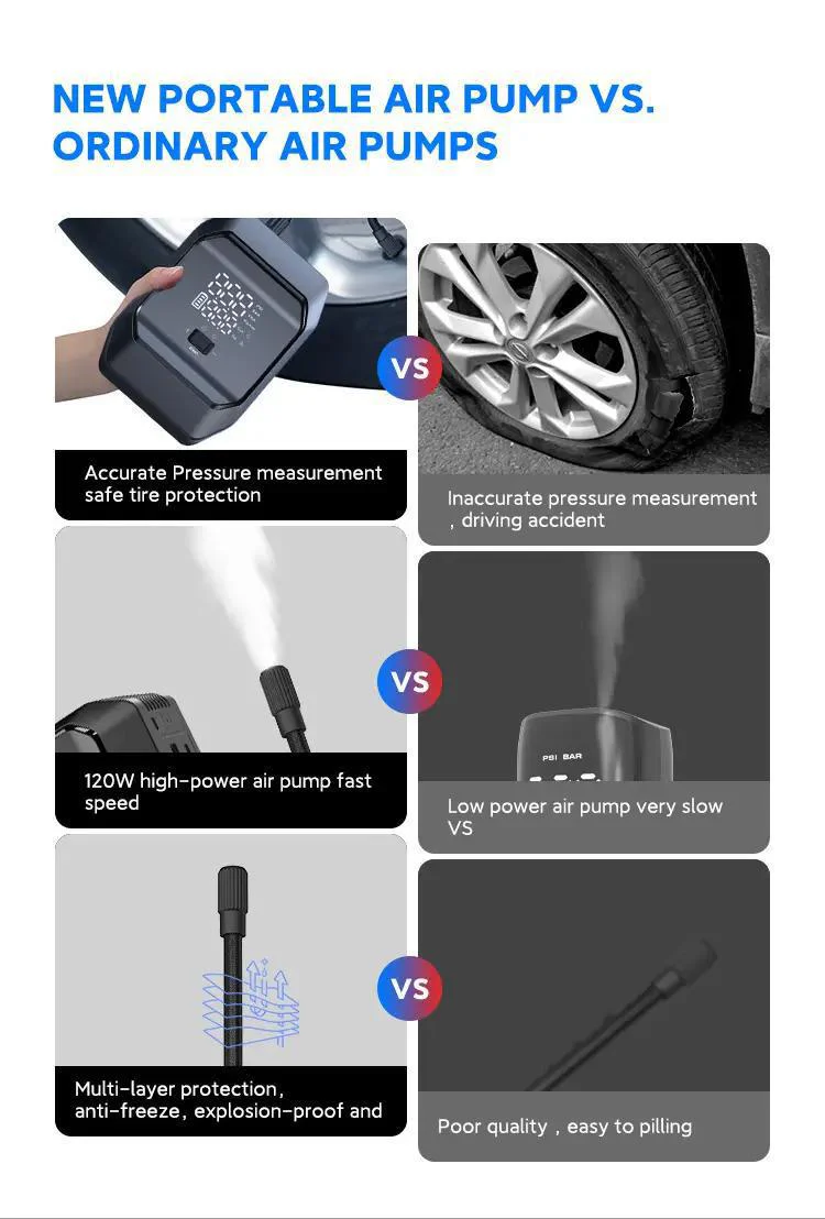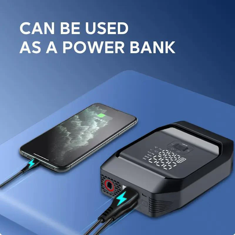 • Tyre Inflator – Built-in air compressor with adjustable pressure settings to inflate tyres, sports equipment, and more.